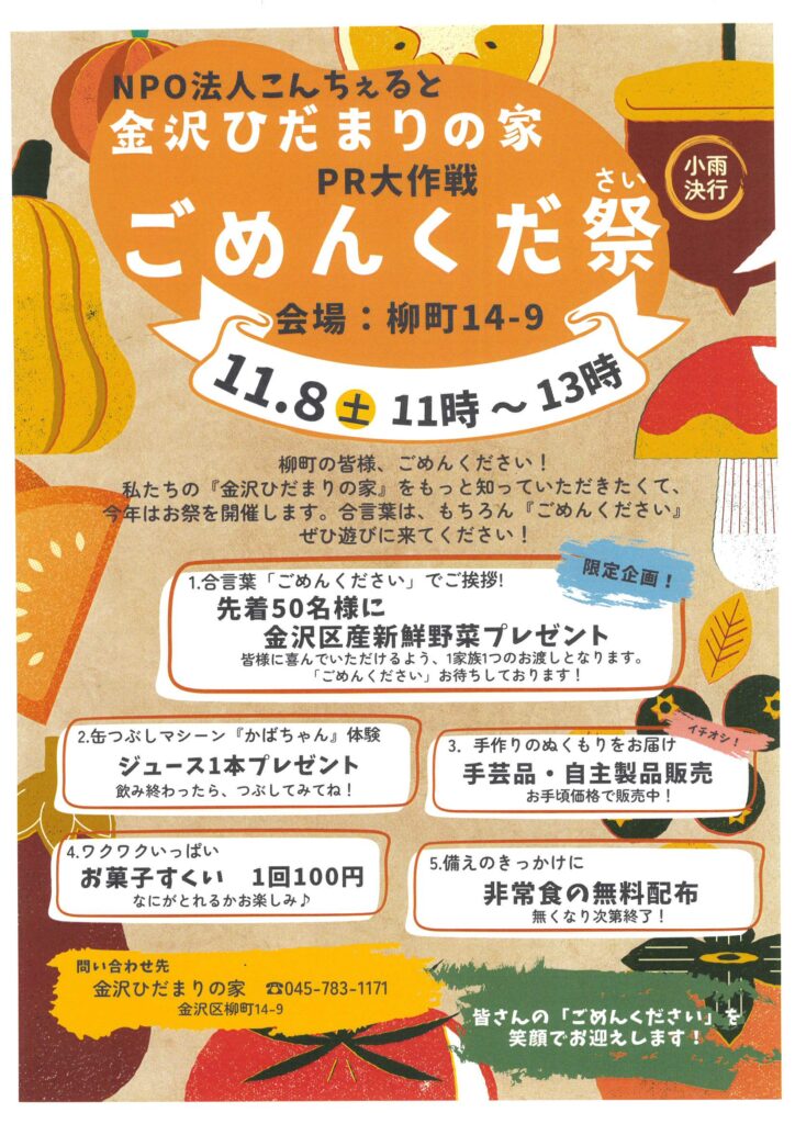 2025年11月8日に「ごめんくだ祭」行います。ぜひお立ち寄りください!